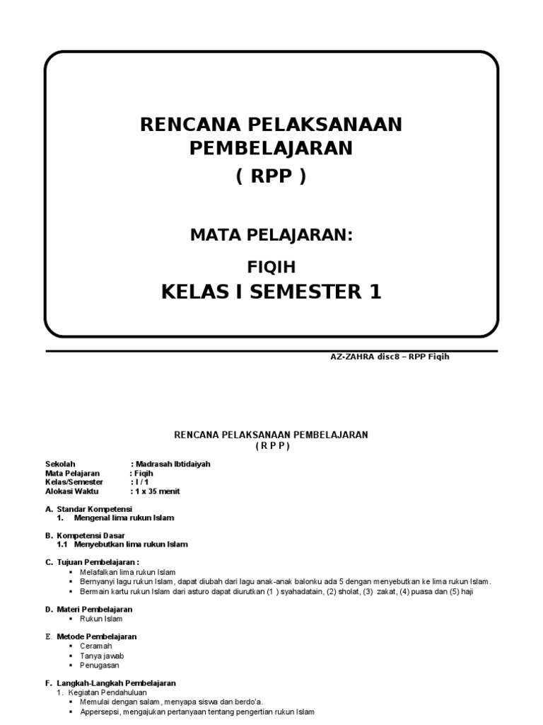 Bersumber pada surat edaran menteri pendidikan hingga dengan demikian bapak/ ibu guru tidak perlu lagi repot mencari model rpp fikih 1 lembar kelas 4 semester 1 revisi 2020, karena buat.
